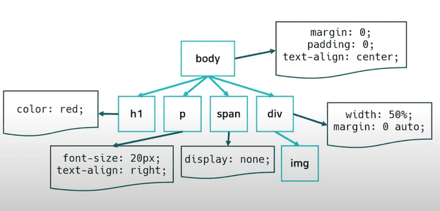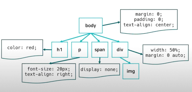 }예를 들어 위와 같은 css는 아래와 같은 형태의 트리구조로 변환된다.