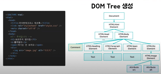 최상위 객체는 Document이고 주석이나 텍스트 그리고 태그들의 속성(attribute)까지도 구분되 어 전부 트리에 포함된다.