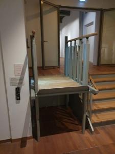 Deze foto's zijn genomen in een museum. Dit apparaat functioneert zowel als trap als een soort lift voor mensen in een rolstoel. Ik heb zoiets nog nooit in Korea gezien. Ik vind het een geweldig idee om zo'n apparaat te installeren voor mensen met een beperking.