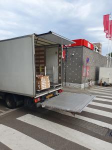 Here's a photo of a Bol.com delivery truck (a well-known online store in the Netherlands) I found online — not taken by me. It’s not a large truck, but it does have a lift.